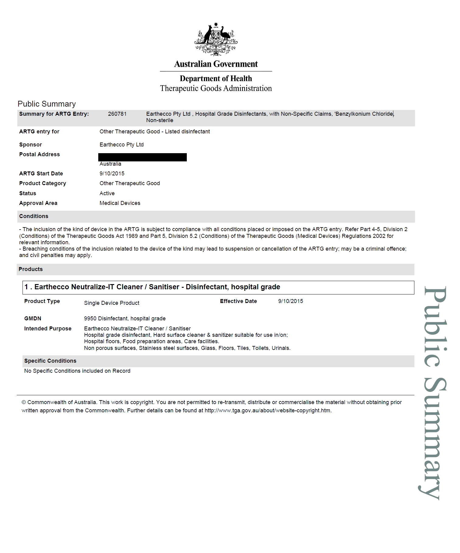 TGA Certified (ARTG ID 260781)